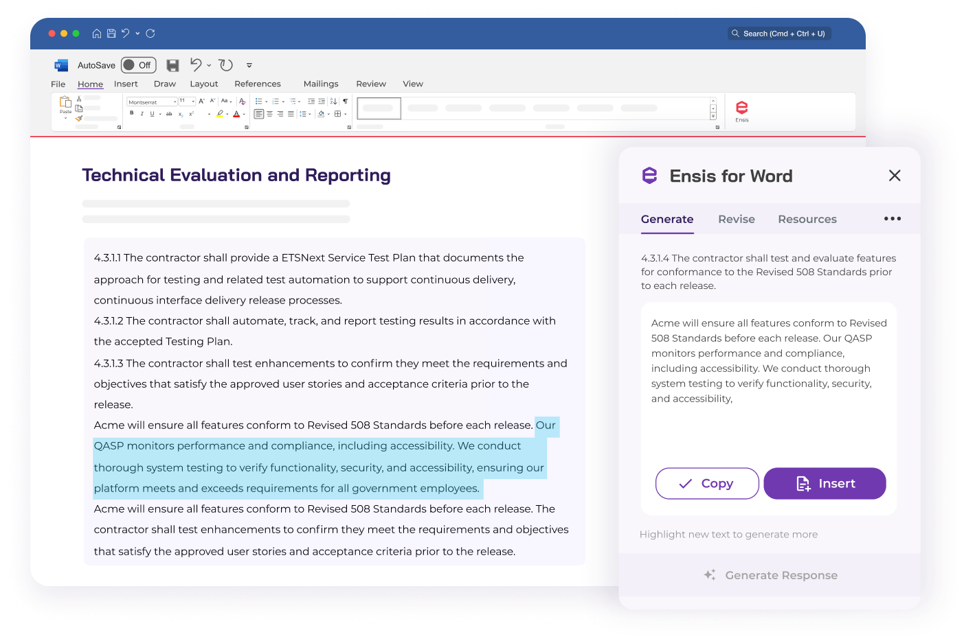 Draft proposals using your gold-standard content and image libraries, ensuring accuracy and consistency across submissions